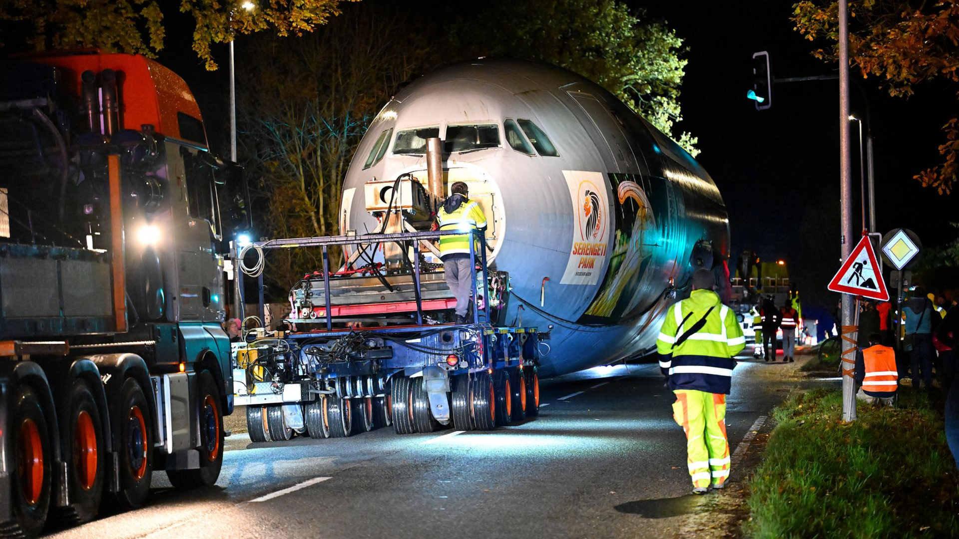 Ausrangierter Bundeswehr-Airbus A310 ist im Serengeti-Park Hodenhagen angekommen Im Juni konnte der Serengeti-Park aufatmen, denn nach über 4 Jahren, gab es endlich grünes Licht für Airbus-Transport. „Wir haben in dem langwierigen Prozess zahlreiche Gespräche mit dem Serengeti Park geführt und nach einer umweltverträglichen Lösung gesucht. Die gibt es mit der neuen Methode jetzt. Im von uns vorgeschlagenen Praxistest konnten sich die Untere Naturschutzbehörde, die Gemeinde und der NABU davon überzeugen, dass es nicht mehr zu Schäden an den wertvollen Bäumen im LSG kommt. Wir freuen uns, das Thema für den Zuständigkeitsbereich der Region Hannover nun mit einem für alle Beteiligten zufriedenstellenden Ergebnis abschließen zu können“, erklärte Jens Palandt, Umweltdezernent der Region Hannover. Am Sonntag, den 26.10. hat der Transport am Nachmittag das Flughafengelände verlassen. Um 22:00 Uhr setze sich der Schwerlastzug dann in Bewegung. In 3 Etappen kam der Airbus dann am Mittwoch in der Nacht im Serengeti-Park an. Geplant ist ein Restaurant mit insgesamt 148 Sitzplätze im Inneren auf den original Flugzeug-Sitzen.