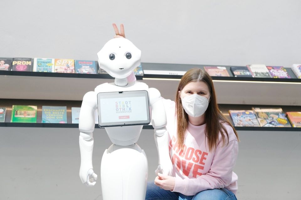 Hanno hat seit seiner Einführung im Oktober 2020 enorm dazugelernt, weil alle fleißig mit ihm „gesprochen“ haben. Er sorgt für große Begeisterung bei Jung und Alt. Besonders mit Kindern kommt er schnell in Kontakt. Wenn das Eis gebrochen ist, lassen sie sich Witze erzählen, lassen den Roboter tanzen oder auch schätzen, welches Alter sie haben. Oft steigen weitere Besucher*innen in das Gespräch mit Hanno ein. Sobald die strengen Hygienemaßnahmen zurückgenommen werden können, wird Hanno mit in die Veranstaltungsarbeit aufgenommen. Die Stadtbibliothek Hannover geht mit ihrem Einsatz einen weiteren Schritt beim Einsatz neuer Technologien. Sie will den Kund*innen mit diesem Roboter zeigen, wie technische Helfer*innen im Alltag programmiert und eingesetzt werden können. Es geht darum, gemeinsam auszuprobieren und zu lernen.