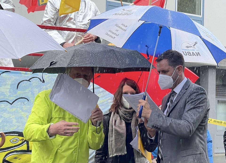 BUND und NABU haben heute einen Antrag auf Widerruf des Planfeststellungsbeschlusses für Schacht Konrad beim Niedersächsischen Umweltministerium eingereicht. Damit fordern die Umweltverbände das Land auf, das Atommüllprojekt aufzugeben und den Weg für eine transparente und wissenschaftlich basierte Standortsuche freizumachen. Aufgrund der enormen Umweltprobleme ist der Schacht als Atommülllager ungeeignet. Ihren Antrag haben die Umweltschützer*innen gemeinsam mit dem Salzgitteraner Bündnis gegen Schacht KONRAD Niedersachsens Umweltminister Olaf Lies heute persönlich übergeben.