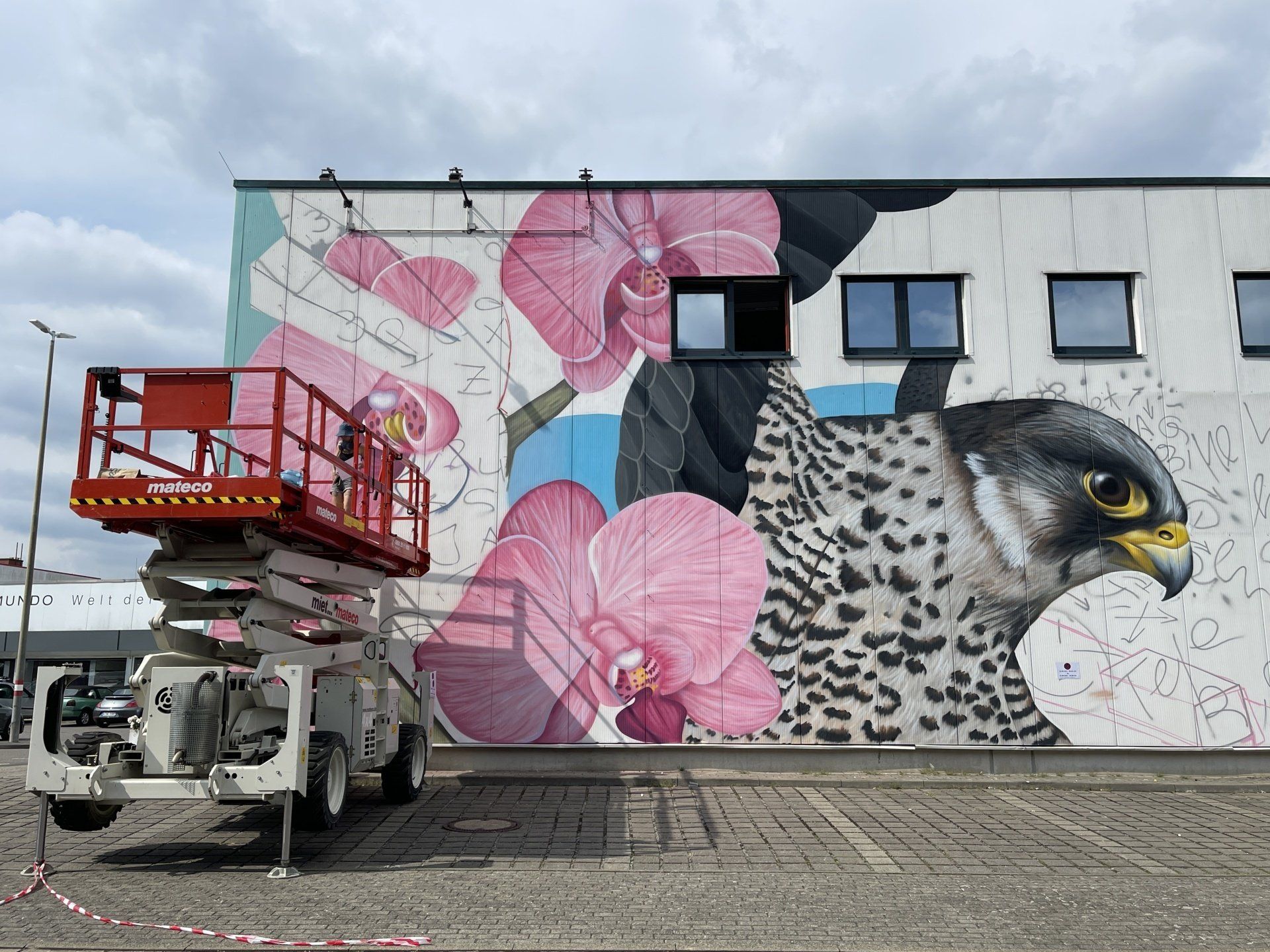 Auf dem Foto sieht man die Künstlerin Irene Lopez Leon aus Barcelon. Sie bringt Farbe an die Wand in der Bornumer Str. 146. (boesner GmbH).