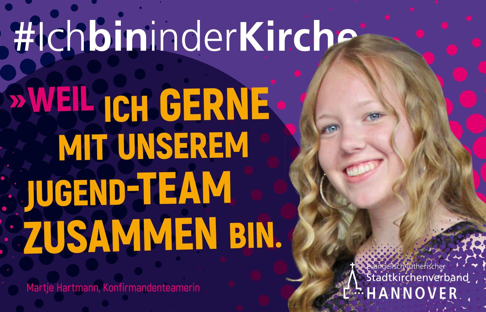 Der Evangelisch-lutherische Stadtkirchenverband Hannover hat jetzt eine neue Imagekampagne gestartet, bei der zehn hannoversche Persönlichkeiten mit einer kurzen Aussage ihre Kirchenmitgliedschaft begründen. Unter der Überschrift „#Ich bin in der Kirche, weil …“ äußern sich beispielsweise Bettina Wulff, Ehefrau des Altbundespräsidenten Christian Wulff, oder der Altstadt-Gastronom Dietmar Engel zu ihrer Verbindung mit der Kirche. Weiter kommen junge Ehrenamtliche, lokale Medienvertreter oder kirchlich Aktive mit Migrationshintergrund zur Sprache. Als hauptsächliche Gründe für ihre Kirchenmitgliedschaft nennen die sieben Frauen und drei Männer Themen wie Gemeinschaft, Lebensorientierung, praktisch gelebte Nächstenliebe oder gesellschaftliche Solidarität. Die mit einem Porträtfoto versehenen Statements werden noch bis Sonntag, 25. Juli, im Fahrtgastfernsehen der ÜSTRA gezeigt und sind als road screens, digitale Bildschirme, an mehreren großen Straßenkreuzungen in Hannover zu sehen. Die Kampagne läuft auch über den Facebook- und Instagram-Kanal des Stadtkirchenverbandes.